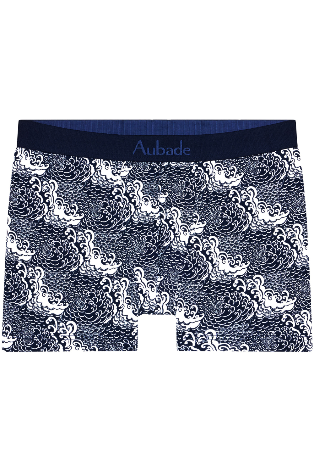 A Japanese-inspired drawing, a tribute to Hokusai?s famous painting The Wave. Navy waistband with tone-on-tone Aubade logo.