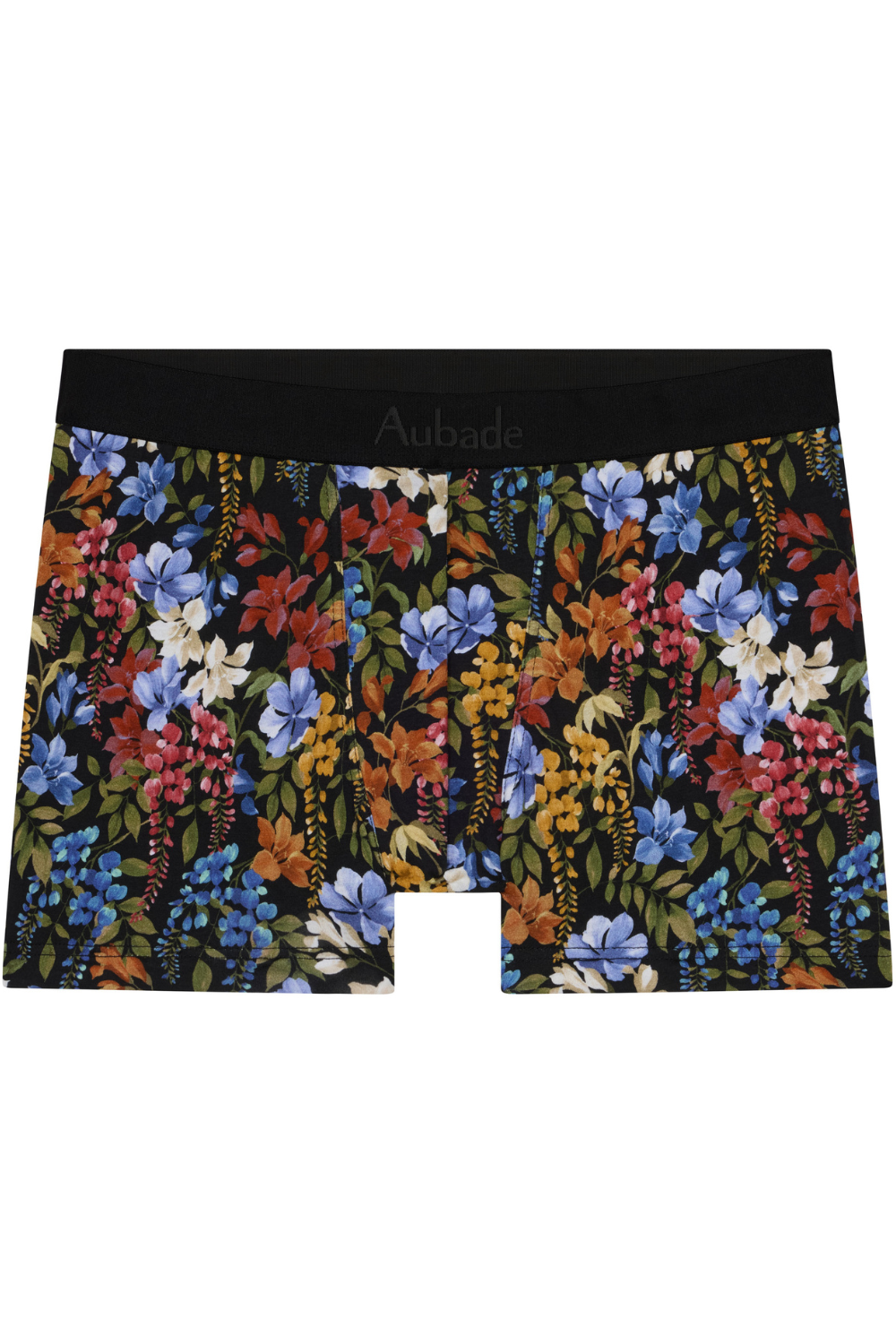 An abundance of colourful flowers in the comforting colours of autumn. Black waistband with tone-on-tone Aubade logo.
